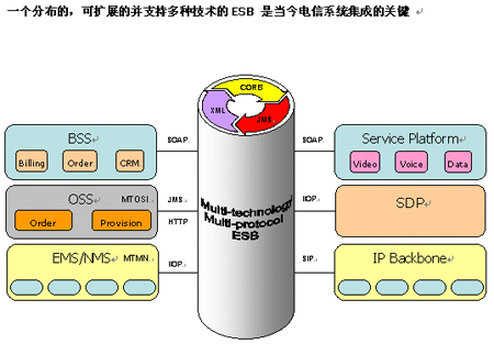 (例如, 其它的 OSS 或BSS 服務(wù))。 這個(gè)“軟件總線”就是我們所說(shuō)的Enterprise Service Bus (ESB), “enterprise”