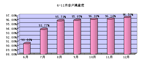 根據(jù)我們的客戶(hù)調(diào)查(每月一次),客戶(hù)對(duì)服務(wù)人員的業(yè)務(wù)能力的滿(mǎn)意度得到持續(xù)改進(jìn)。具體數(shù)據(jù)如下圖: