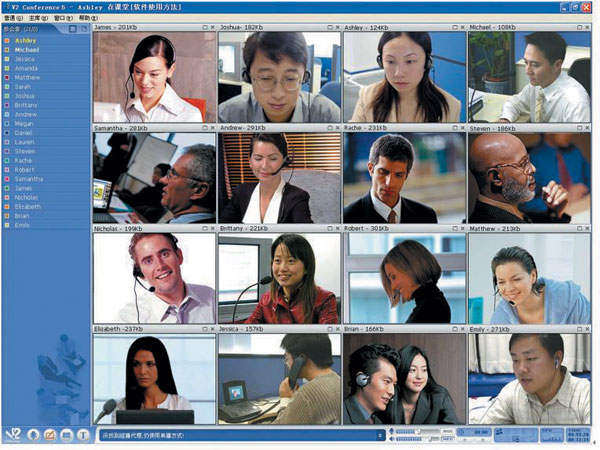 V2 Conference系統(tǒng)采用MPEG4和H.263視頻壓縮算法,具有良好的帶寬適應(yīng)性和視頻壓縮率。V2專利技術(shù)的碼流控制機(jī)制和帶寬自適應(yīng)機(jī)制保證了在網(wǎng)絡(luò)狀況較差時系統(tǒng)仍能提供較理想的視頻效果。采用視頻多通道復(fù)用技術(shù)時,多路視頻數(shù)據(jù)會智能地復(fù)用已有的視頻通道,相互協(xié)調(diào)傳送視頻數(shù)據(jù),從而使視頻數(shù)據(jù)的傳送更加有序,提高了傳輸效率,節(jié)約了網(wǎng)絡(luò)帶寬,改善了流暢度。