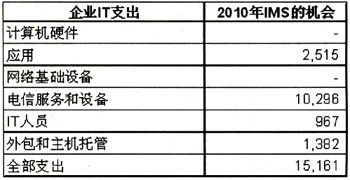 2010年預(yù)計IMS應(yīng)用在企業(yè)中的收入機會(單位:百萬美元)