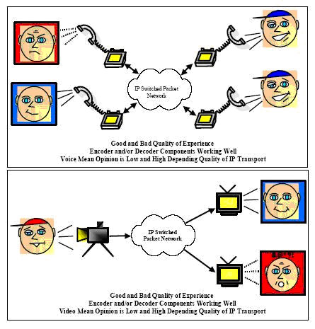 自然地,人們會(huì)向到將MOS或其它基于判斷的分值測(cè)量技術(shù)應(yīng)用于IP業(yè)務(wù)的質(zhì)量體驗(yàn)測(cè)量。對(duì)于IP業(yè)務(wù),業(yè)務(wù)提供商的控制力是有限的,攜帶語音和視頻信息的數(shù)據(jù)包進(jìn)入IP網(wǎng)絡(luò)后,IP業(yè)務(wù)提供商能做的僅僅丟棄數(shù)據(jù)包、延遲數(shù)據(jù)包或者將數(shù)據(jù)包重新排序。