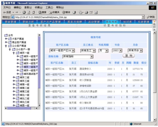 作為電信營銷服務(wù)支撐系統(tǒng),其主要功能是支撐營銷人員開展?fàn)I銷活動,并通過功能完善的考核系統(tǒng)幫助各級人員進(jìn)行工作管理。本系統(tǒng)可以對KPI指標(biāo)進(jìn)行靈活的設(shè)定,可以靈活定義多種參與考核的數(shù)據(jù)來源,使得各級主管能夠?qū)蛻艚M、社區(qū)(商業(yè)客戶區(qū)、農(nóng)村統(tǒng)包區(qū))的營銷服務(wù)工作進(jìn)行考核評分?己酥芷诳梢酝ㄟ^參數(shù)進(jìn)行設(shè)定(一般以月為單位)。
