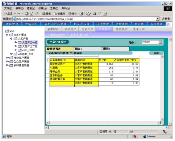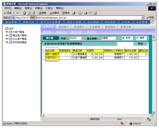 本系統(tǒng)是以市場為導(dǎo)向、客戶為中心、效益為目標(biāo)的電信營銷和服務(wù)的支撐系統(tǒng),為企業(yè)經(jīng)營服務(wù)和營銷戰(zhàn)略提供有力的支撐,通過對業(yè)務(wù)收入、業(yè)務(wù)發(fā)展以及市場競爭的深入分析,從而達(dá)到留住老客戶、發(fā)現(xiàn)新客戶,了解競爭對手動態(tài),及時(shí)掌握市場變化趨勢的目的。