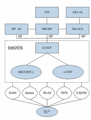 最上面一層是應用層,由應用和內容服務器組成,負責為用戶提供IMS增值業(yè)務,主要網(wǎng)元是一系列通過CAMEL、OSA/Parlay和SIP技術提供多媒體業(yè)務的應用平臺。運營商可以自行開發(fā)一些基于SIP的應用,通過標準SIP接口與IMS系統(tǒng)連接;如果運營商需要連接第三方SP的應用,IMS可以和標準的API,如OSAAPI連接,通過OSA/ParlayGW對第三方非信任的SP業(yè)務進行鑒權和管理等。