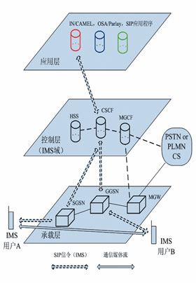 IMS技術對控制層功能做了進一步分解,實現(xiàn)了會話控制實體CSCF(CallSessionControlFunction)和承載控制實體MGCF(Media