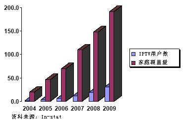 圖1世界范圍IPTV市場預測(單位:百萬)