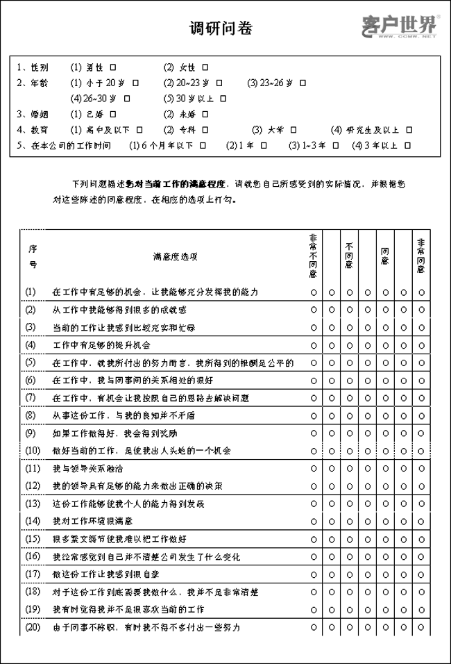 對于呼叫中心的實際情況來說,采用“明尼蘇達(dá)工作滿意度量表”(Minnesota Satisfaction Questionnaire,簡稱MSQ)效果最好,因為: