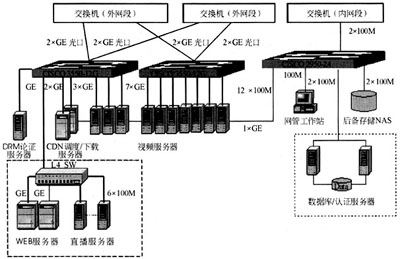 核心包括以下子系統(tǒng):WEB服務(wù)子系統(tǒng)、認(rèn)證服務(wù)器、CDN調(diào)度/下載服務(wù)器、流媒體播出服務(wù)子系統(tǒng)、DRM認(rèn)證服務(wù)子系統(tǒng)、數(shù)據(jù)庫服務(wù)子系統(tǒng)、后備存儲NAS系統(tǒng)、內(nèi)部管理服務(wù)子系統(tǒng)等。