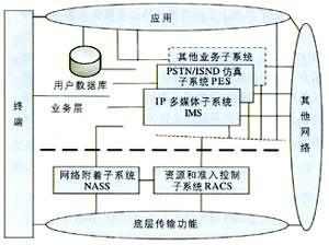 - PSTN/ISDN仿真子系統(tǒng)(PES):為經(jīng)過網(wǎng)關(guān)連接到IP網(wǎng)的傳統(tǒng)電話終端仿真PSTN/ISDN網(wǎng)絡,保證傳統(tǒng)PSTN/ISDN業(yè)務的可用性和一致性,使得終端用戶不會意識到其實并沒有連接到PSTN/ISDN網(wǎng)絡。