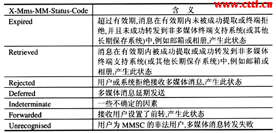 在網(wǎng)間業(yè)務(wù)互通中,遞送報告的狀態(tài)非常重要,因為不同運營商間的結(jié)算要依靠遞送報告的狀態(tài)。在3GPP的協(xié)議規(guī)范中,沒有對遞送報告的狀態(tài)含義做詳細的規(guī)定:根據(jù)各個廠家開發(fā)設(shè)備的情況,可擴展相應(yīng)的規(guī)定,具體的狀態(tài)含義參見表1。