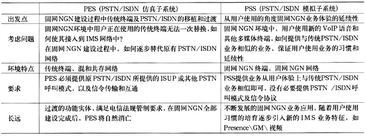 業(yè)務(wù)層的PSS和PES子系統(tǒng)針對(duì)不同的終端類(lèi)型和業(yè)務(wù)需求而設(shè)計(jì)。使用PSS和PES主要目的是使寬窄帶域完全分離,即SIP用戶通過(guò)PSS子系統(tǒng)完成接入和業(yè)務(wù)提供,窄帶用戶通過(guò)PES子系統(tǒng)完成接入和業(yè)務(wù)提供。具體比較如表2所示。