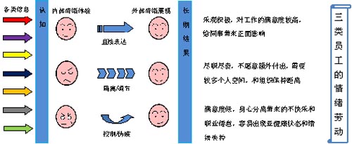情緒勞動和智力、體力勞動一樣,都是耗費(fèi)心智和體力能量的一種勞動形式。而由于這種勞動是隨著服務(wù)行業(yè)的興起而發(fā)展的,所以被較少的人意識到,就連心理學(xué)的科學(xué)家們也是1983年才提出了這個概念,企業(yè)管理者的工作應(yīng)用就更是遲緩。我們從最早接觸呼叫中心的管理,就按照體力勞動者的管理方式在進(jìn)行績效和班務(wù)管理,按照智力勞動者的方式來進(jìn)行目標(biāo)管理和業(yè)務(wù)培養(yǎng),但是這些所不能識別和涵蓋的情緒勞動會帶來諸多的“Surprise”和難題。盡管有些呼叫中心曾經(jīng)開展過陽光心態(tài)的培訓(xùn)或者心理學(xué)的講座,但是情緒勞動的支持和管理不是靠一兩次培訓(xùn)就能解決的。