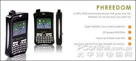 很多技術(shù)分析人士都認(rèn)為,VoWiFi的下一波功能將主要集中在雙模手機上,即手機擁有Wi-Fi IP電話功能和普通蜂窩電話功能。當(dāng)用戶位于家中、辦公室或公共Wi-Fi熱點區(qū)域,可以使用Wi-Fi IP電話功能進行通話,而在沒有Wi-Fi網(wǎng)絡(luò)的地區(qū),則可以使用傳統(tǒng)的蜂窩網(wǎng)絡(luò)進行通話。不論采用哪種網(wǎng)絡(luò),用戶的手機號碼是唯一的。由于通過Wi-Fi網(wǎng)絡(luò)撥打IP電話的費用要低于現(xiàn)有的固定電話,因此未來這種電話很可能會取代大部分用戶目前使用的固定電話。下圖為GUPP公司最新推出的VoWiFi/GSM雙模Linux智能手機PHREEDOM