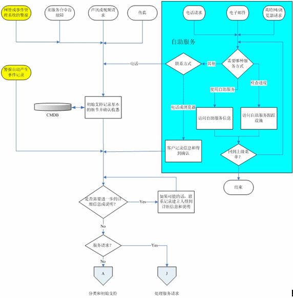 在記錄流程之后,事件將經(jīng)過(guò)分類(lèi)和初始支持流程,而服務(wù)請(qǐng)求則被傳遞到“服務(wù)請(qǐng)求處理”流程。