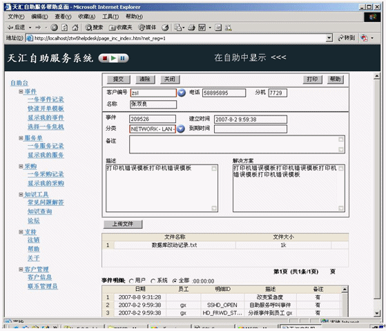 事件記錄應(yīng)該在某個(gè)服務(wù)臺(tái)工具中記錄和跟蹤,該工具最好是作為集成的服務(wù)管理工具集的構(gòu)成部分。該工具應(yīng)該在引發(fā)新的事件時(shí)提供最基本的事件記錄。比如為了幫助提高效率,當(dāng)你在天匯幫助臺(tái)的用于記錄事件的事件窗口中輸入請(qǐng)求發(fā)起者的姓名時(shí),利用客戶(hù)數(shù)據(jù)庫(kù)可以自動(dòng)填充諸如位置、部門(mén)和聯(lián)系詳細(xì)信息等字段。天匯幫助臺(tái)還支持使用計(jì)算機(jī)電話(huà)集成