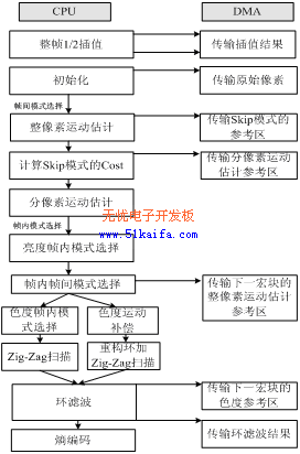 只依靠上面這些方法進行優(yōu)化,視頻壓縮還不能達到實時要求,還需要進行算法級優(yōu)化,以及對編碼器中各個模塊進行程序代碼級的優(yōu)化。常通過采用內(nèi)聯(lián)函數(shù)、軟件流水、線性匯編優(yōu)化等方法,以及合理使用針對視頻處理而設(shè)計的特殊指令集,充分利用DM642內(nèi)部的并行計算單元,提高了程序的運行速度。由于篇幅有限,對這些優(yōu)化方法本文不再重點論述。