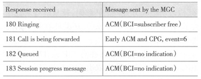。6)發(fā)出ACM消息后,所有的臨時(shí)消息將被翻譯成ISUP CPG消息;