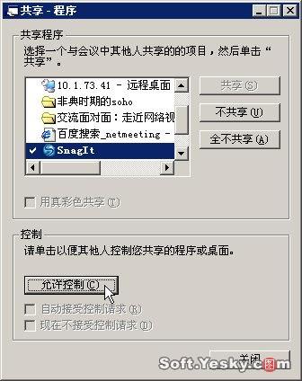 然后在客戶(hù)端Netmeeting中只須在其窗口出現(xiàn)的共享程序窗口中單擊“控制”/“請(qǐng)求控制權(quán)”并經(jīng)授權(quán)后即可以操控主機(jī)上的應(yīng)用程序了。