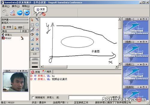 可以看到該系統(tǒng)提供了多路視頻展示與共享文檔顯示區(qū)、文本交流、文檔共享、語(yǔ)音交流等多種交互手段,各用戶(hù)可以在主席的協(xié)調(diào)下使用各項(xiàng)功能輕松地實(shí)現(xiàn)實(shí)時(shí)交流與網(wǎng)絡(luò)協(xié)作。