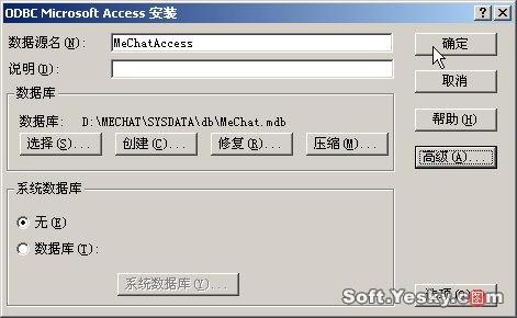 為使Mechat系統(tǒng)具有較高的運(yùn)行效率,我們將其添加數(shù)據(jù)庫(kù)支持,單擊“開(kāi)始”/“設(shè)置”/“控制面板”,選擇“治理工具”/“數(shù)據(jù)源(ODBC)”,切換至“系統(tǒng)DSN”,單擊“添加”按鈕啟動(dòng)ODBC數(shù)據(jù)源添加向?qū)Вx擇“MicrosoftAccessDriver(*、mdb)”,然后在DSN屬性設(shè)置窗口設(shè)置數(shù)據(jù)源名稱(chēng)為“MeChatAccess”,選擇數(shù)據(jù)庫(kù)文件為D:\MeChat\SysData\db目錄下的MeChat、mdb(如圖23)。設(shè)置完畢,單擊“確定”退出。