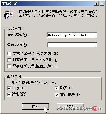 在Windows2000/XP中,Netmeeting在默認(rèn)情況下已經(jīng)安裝了,假如你的系統(tǒng)中沒(méi)有Netmeeting,那么你可以嘗試以“添加Windows組件”的形式安裝Netmeeting,此外,你還可以到微軟網(wǎng)站下載Netmeeting,網(wǎng)址是http://download、microsoft、com/download/netmeeting/Install/3、01/W9XNT4/CN/nm30、exe,版本為簡(jiǎn)體中文3、01版。Netmeeting安裝極為簡(jiǎn)單,只要一路單擊“下一步”就可以了,這里就不再贅述。