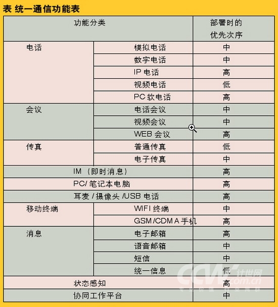 ”、“智能通信”和“統(tǒng)一溝通”等,盡管每個廠商所給出的定義均有些細微的差別,但總體來看,其核心內容就是指將現(xiàn)在各種溝通方式進行融合,目的是讓人們無論是在任何時間、任何地點,都可以通過任何設備、任何網絡實現(xiàn)自由的溝通。目前常用的溝通方式有電話、傳真、短信、email、Web會議、視頻會議、語音信箱、IM軟件、協(xié)同工作平臺等等,這些溝通方式覆蓋了電信、IT和互聯(lián)網三大領域,因此統(tǒng)一通信是這三大領域逐步發(fā)展、自然融合的結果。