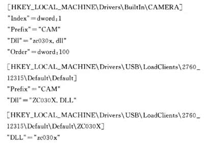 系統(tǒng)自動(dòng)加載驅(qū)動(dòng)程序時(shí),首先要將驅(qū)動(dòng)程序復(fù)制到\WINDOWS文件夾下,然后向注冊(cè)表中寫(xiě)入攝像頭的驅(qū)動(dòng)信息: