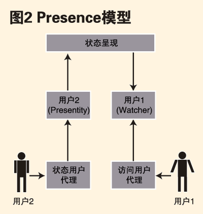 Presence用以傳達(dá)用戶狀態(tài)以及用戶通過一組設(shè)備進(jìn)行通信的能力,如:聯(lián)機(jī)、忙碌、離開、脫機(jī)等狀態(tài)。這些狀態(tài)信息反映出與該用戶與其他用戶實(shí)現(xiàn)通信的可能性。