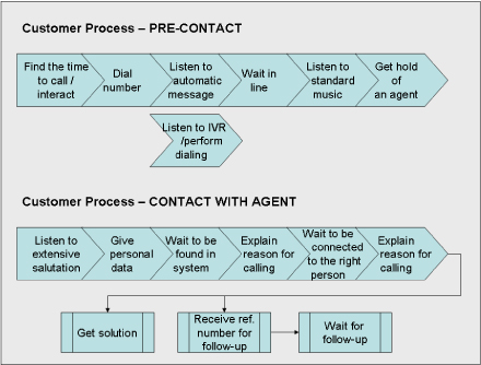那么,從企業(yè)內(nèi)部的觀點(diǎn)出發(fā)看我圍繞這次簡單的預(yù)定流程所產(chǎn)生的總體客戶體驗(yàn)如何呢?這需要好好評(píng)估,我一共只打了兩次電話并在24小時(shí)內(nèi)得到解決,而且我們之間的互動(dòng)——很有可能——已經(jīng)被記錄在航空公司的CRM系統(tǒng)中。但是如果你問問作為客戶的我,我會(huì)給出一個(gè)完全不同的場(chǎng)景描述:首先,提供給我的可聯(lián)絡(luò)電話號(hào)碼實(shí)在太多了,其次,沒有說明這些電話號(hào)碼處理的“范圍”各是什么,再次代理質(zhì)量不合格,她完全不知道自己該干什么,還得求助于另外一個(gè)同事,最后,也是很重要的一點(diǎn),最終提交的解決方法并不能讓人接受。這些信息——或者說的更準(zhǔn)確些,客戶的評(píng)價(jià)——出現(xiàn)在呼叫中心的報(bào)告里了嗎?出現(xiàn)在哪兒?沒有,這一方面是因?yàn)榱鞒滩⒉皇且钥蛻魹橹行牡挠^點(diǎn)來定義的,另一方面因?yàn)槲覀兪侨,我們努力的在工作,不希望自己變成透明人?