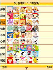 更新完成后再次選擇“發(fā)送閃信”原來空空的屏幕變得熱鬧起來。每個(gè)分類里面都充滿了各種或可愛、或搞笑、或生動的形象。選擇一個(gè)動畫從屏幕左下的“選項(xiàng)”內(nèi)選擇“發(fā)送”進(jìn)入發(fā)送的操作界面,所選的動畫在屏幕中間顯著位置不斷的循環(huán)播放,動畫的內(nèi)容一目了然。選擇發(fā)送進(jìn)入收信人信息輸入屏幕,在收信人位置輸入對方的手機(jī)號碼,在附言位置輸入文字然后發(fā)送,等待片刻后一條閃信就發(fā)送成功了。所有的發(fā)送和接收到閃信記錄都可以在“收發(fā)記錄”內(nèi)方便的查找、管理或者直接回復(fù)轉(zhuǎn)發(fā)。