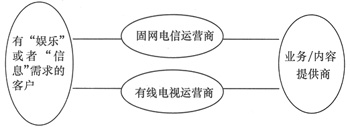 如圖1所示,雖然兩者使用的技術(shù)不同,但它們有一個(gè)相同的運(yùn)營(yíng)組織結(jié)構(gòu),也就是說,客戶、運(yùn)營(yíng)系統(tǒng)和業(yè)務(wù)/內(nèi)容提供商是它們競(jìng)爭(zhēng)的3要素,下面將從這幾個(gè)方面對(duì)IPTV與“數(shù)字電視”的競(jìng)爭(zhēng)做簡(jiǎn)要的分析。