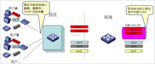 不同業(yè)務(wù)的VLAN具體劃分是通過(guò)家庭網(wǎng)關(guān)來(lái)實(shí)現(xiàn)的。