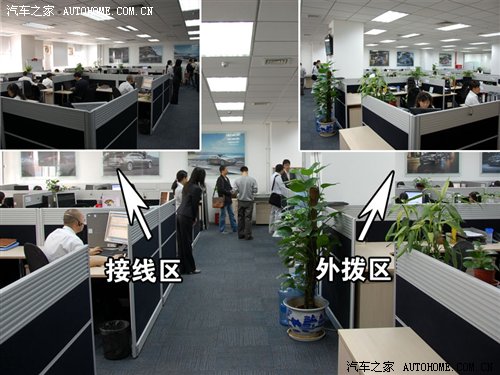 這是寶馬客服呼叫中心大廳,共分兩個(gè)區(qū)域,分別是接線區(qū)和外撥區(qū)。(如上圖所示)通過對寶馬呼叫中心的采訪我們得知,客服中心的員工在正式上崗之前有2個(gè)月的培訓(xùn)期,培訓(xùn)兩個(gè)月后才能正式上崗;所以員工一個(gè)月共接8000多個(gè)電話,所有電話均有錄音。