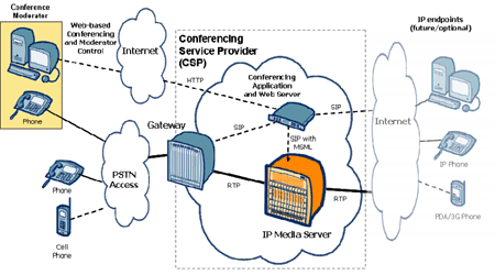 — 而屬于現(xiàn)在。許多CSP已開始采用應(yīng)用服務(wù)器、媒體服務(wù)器和媒體網(wǎng)關(guān)來運(yùn)營具成本效益的IP數(shù)據(jù)中心,從而向PSTN用戶群提供經(jīng)濟(jì)的會(huì)議服務(wù)。