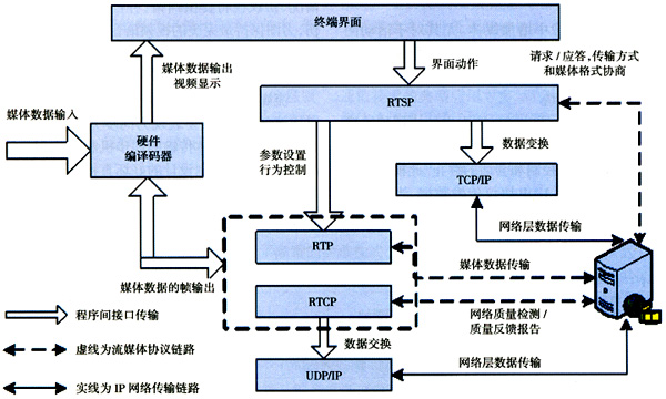 網絡的帶寬是完成流媒體傳輸?shù)奈镔|基礎,在傳輸聲音、圖像、視頻等多媒體信息流時,即使這些媒體流予以壓縮,所需的帶寬仍然比文字文件大,但并不是有足夠的帶寬就可以完全解決流媒體傳輸問題。一般而言,所需帶寬的多少是與應用密切相關的,從應用角度來看,只要用戶數(shù)不斷增加、信息服務量不斷增加,帶寬有多少都是不夠的。同步是媒體流的基本控制方法。流媒體是時間屬性的表現(xiàn),這依賴于RTSP協(xié)議棧。