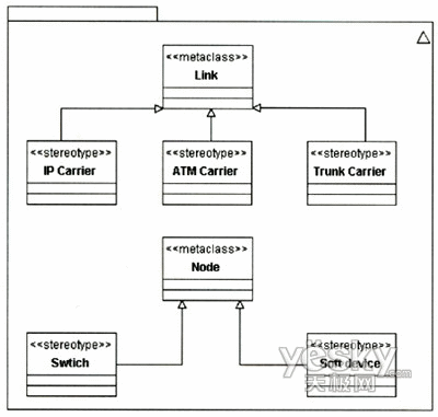該擴展針對Link和Node和兩個元類增加了NGN中關于承載和節(jié)點的定型?梢愿鶕(jù)需要對該模型作進一步擴展,如可以增加關于接入網(wǎng)承載的定型等。