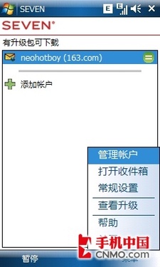 昨天在逛壇子時(shí),筆者發(fā)現(xiàn)了一款基于WM5/WM6系統(tǒng)下的PushMail免費(fèi)軟件——SEVEN,經(jīng)過試用,感覺非常不錯(cuò),對WM郵件系統(tǒng)起到了非常好的補(bǔ)充作用,在這里和大家分享一下。
