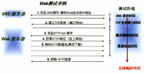 在用戶對無線數(shù)據(jù)業(yè)務(wù)的訪問過程中,通常會包含多個階段(業(yè)務(wù)處理過程)。如當(dāng)用戶在使用手機(jī)要瀏覽網(wǎng)頁的時候,先輸入網(wǎng)頁的地址,然后按手機(jī)上的“訪問”按鈕,一段時間后手機(jī)的屏幕上就會顯示出要瀏覽的網(wǎng)頁頁面。看似簡單的過程,其實這里面包含了以下幾個步驟:DNS查找時間、TCP連接時間、服務(wù)器響應(yīng)時間和數(shù)據(jù)下載時間。在這中間,只要任何一步出了問題,如DNS解析時間過長、TCP連接建立時間過長、應(yīng)用服務(wù)器負(fù)載過重、網(wǎng)絡(luò)可用信道資源少而造成數(shù)據(jù)下載慢,都可能會造成頁面下載失敗。因此,為了能準(zhǔn)確地定位造成用戶對Web服務(wù)質(zhì)量感知度差的原因,我們就需要得到各階段的性能參數(shù),這樣才能快速地進(jìn)行相關(guān)服務(wù)器和網(wǎng)絡(luò)的故障查找并解決問題。