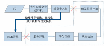 以圖4智能網(wǎng)充值開(kāi)機(jī)流程為例,其經(jīng)歷的步驟繁多,特別是其中信控判斷邏輯復(fù)雜,程序處理耗時(shí)多,是引起月結(jié)用戶(hù)充值到賬但無(wú)法及時(shí)開(kāi)機(jī)的關(guān)鍵環(huán)節(jié)。站在服務(wù)用戶(hù)的角度,最直接的應(yīng)急方式便是提取已繳費(fèi)入賬的號(hào)碼直接送HLR施工開(kāi)機(jī),對(duì)于存在欠費(fèi)可能的用戶(hù),其開(kāi)機(jī)狀態(tài)在正常流程進(jìn)行修復(fù),但對(duì)于充值后仍欠費(fèi)的用戶(hù),其開(kāi)機(jī)狀態(tài)將在經(jīng)歷過(guò)信控后自動(dòng)被修改為停機(jī)。