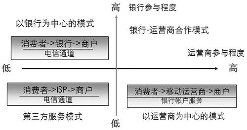系統(tǒng),通過定制終端,電信運營商可以將各種先進的移動應用提供給用戶,使用戶獲得良好的移動化生活體驗。因此,電信運營商在移動支付方面具有較好的用戶資源和營銷渠道?梢,電信運營商和銀行的協(xié)作程度在很大程度上決定了移動支付商業(yè)模式的績效水平。