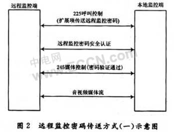 (1)遠程監(jiān)控端呼叫本地監(jiān)控端,呼叫成功并且H.245媒體控制交互成功,則本地監(jiān)控端要求遠程監(jiān)控端輸入遠程監(jiān)控密碼;