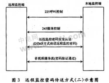 如圖3所示,在呼叫控制和媒體控制過程后傳送和驗證遠程監(jiān)控密碼的方式,具體過程如下: