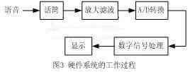 本文作者創(chuàng)新點是利用DSP對A/D采集來的語音信號進(jìn)行處理,然后和計算機(jī)通信,同時將處理結(jié)果送給單片機(jī)實現(xiàn)LCD顯示。