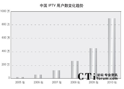 “截至2009年12月底,我國(guó)IPTV用戶數(shù)達(dá)到近470萬(wàn)。其中,中國(guó)電信達(dá)到362萬(wàn),中國(guó)聯(lián)通在50萬(wàn)左右,杭州華數(shù)共發(fā)展用戶56萬(wàn)!薄KA(yù)計(jì):“2010年中國(guó)IPTV用戶數(shù)有望達(dá)到900萬(wàn),中國(guó)電信依舊是發(fā)展主力!盜n-Stat(中國(guó))分析師張強(qiáng)也認(rèn)為我國(guó)目前已有400多萬(wàn)IPTV用戶,因?yàn)樵凇?009年年初,就已經(jīng)達(dá)到300萬(wàn)了”。
