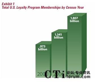 據權威的客戶忠誠度研究機構COLLOQUY在2009出版的一份報告,2008年底,全美客戶忠誠度計劃的參與人次達到18.07億,平均每個美國家庭參與了14.1個忠誠度計劃,相較2006年底的13.41億參與人次,共增了了24.73%(連續(xù)兩年環(huán)比增長12%/年),而同期美國的GDP增長僅為2.2%。從這一點上看,美國企業(yè)對忠誠度營銷的熱情不減,盡管忠誠度營銷在美國已相當成熟,但美國企業(yè)仍然把它當作是營銷的重要工具。