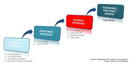 目前多數(shù)電信企業(yè)提供的都是‘隨機(jī)’體驗(yàn)。隨機(jī)體驗(yàn)是各種不連續(xù)端到端體驗(yàn)的集合體。它發(fā)生在整體客戶體驗(yàn)未得到恰當(dāng)管理或企業(yè)漠視客戶與員工的情況下。最終這將導(dǎo)致品牌走向墮落以及丟失有價(jià)值的客戶、利潤和企業(yè)價(jià)值。如果企業(yè)不想如上所述這樣慘淡收場,那么他們至少要做到創(chuàng)造和交付一種可預(yù)測的體驗(yàn)——連續(xù)且有意向的(見圖1)。