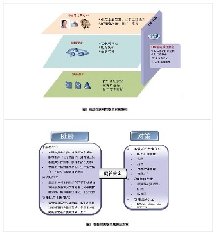 無線業(yè)務(wù)網(wǎng)絡(luò)通常在管理上都是采用帶外管理,但是帶外管理同樣也會引入安全威脅。管理層面的安全威脅點(diǎn)主要是非授權(quán)訪問、網(wǎng)絡(luò)層攻擊、管理信息泄漏/篡改等,相應(yīng)的對策如圖2。