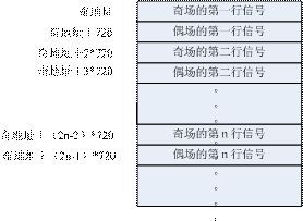 第1種:將一幀的數(shù)據(jù)存儲(chǔ)下來(lái),根據(jù)奇偶場(chǎng)的不同(區(qū)分可以根據(jù)XY),在寫(xiě)周期的時(shí)候,因?yàn)槠鎴?chǎng)的行之間有偶場(chǎng)的信號(hào),所以寫(xiě)數(shù)據(jù)的時(shí)候需要跳地址寫(xiě),根據(jù)行同步信號(hào)(或者SAV也可以)來(lái)區(qū)分行,換行的時(shí)候地址要加額外的720(用來(lái)存放夾雜在奇場(chǎng)信號(hào)中的偶場(chǎng)信號(hào)),直到出現(xiàn)偶場(chǎng)信號(hào)(也就是XY=1)地址切換為初始基地址加720,其余的同奇行的處理方法,具體的地址分配表參照?qǐng)D4。