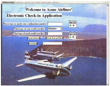 .NET Speech SDK是使用融語音及圖像等為一體的界面來構(gòu)筑Web應(yīng)用的開發(fā)環(huán)境。與該公司的開發(fā)工具--“Visual Studio .NET”配合使用。據(jù)微軟稱,其特點是即使開發(fā)人員不具備語音界面方面的特殊知識也能使用。比如,上圖就是正在使用.NET Speech SDK開發(fā)的可進(jìn)行語音及鍵盤輸入的窗口。文字輸入框右邊的小框是使用SALT(語音應(yīng)用語言標(biāo)簽)語音相關(guān)命令的標(biāo)記。目前,在支持語音功能的Web應(yīng)用的開發(fā)中,必須使用面向圖形和面向語音的兩種開發(fā)工具!拔覀兊哪康氖翘峁┮粋使用一種工具就能開發(fā)包括圖形和語音的多種界面的環(huán)境”(該公司負(fù)責(zé).NET Speech技術(shù)的市場營銷經(jīng)理James Mastan)。