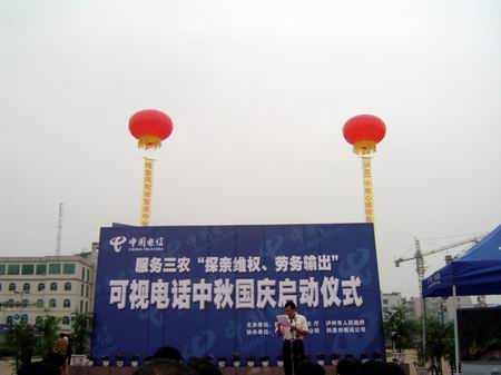 在9月28日上午的活動上,廣東中山的瀘縣務工人員通過可視電話與家鄉(xiāng)親人見了面。中秋團圓,溝通親情,當在廣東務工的曹雪平通過電話見到自己久違的妻子和孩子時,禁不住流下了熱淚,不住地感謝政府和電信部門為農民辦了一件大實事。